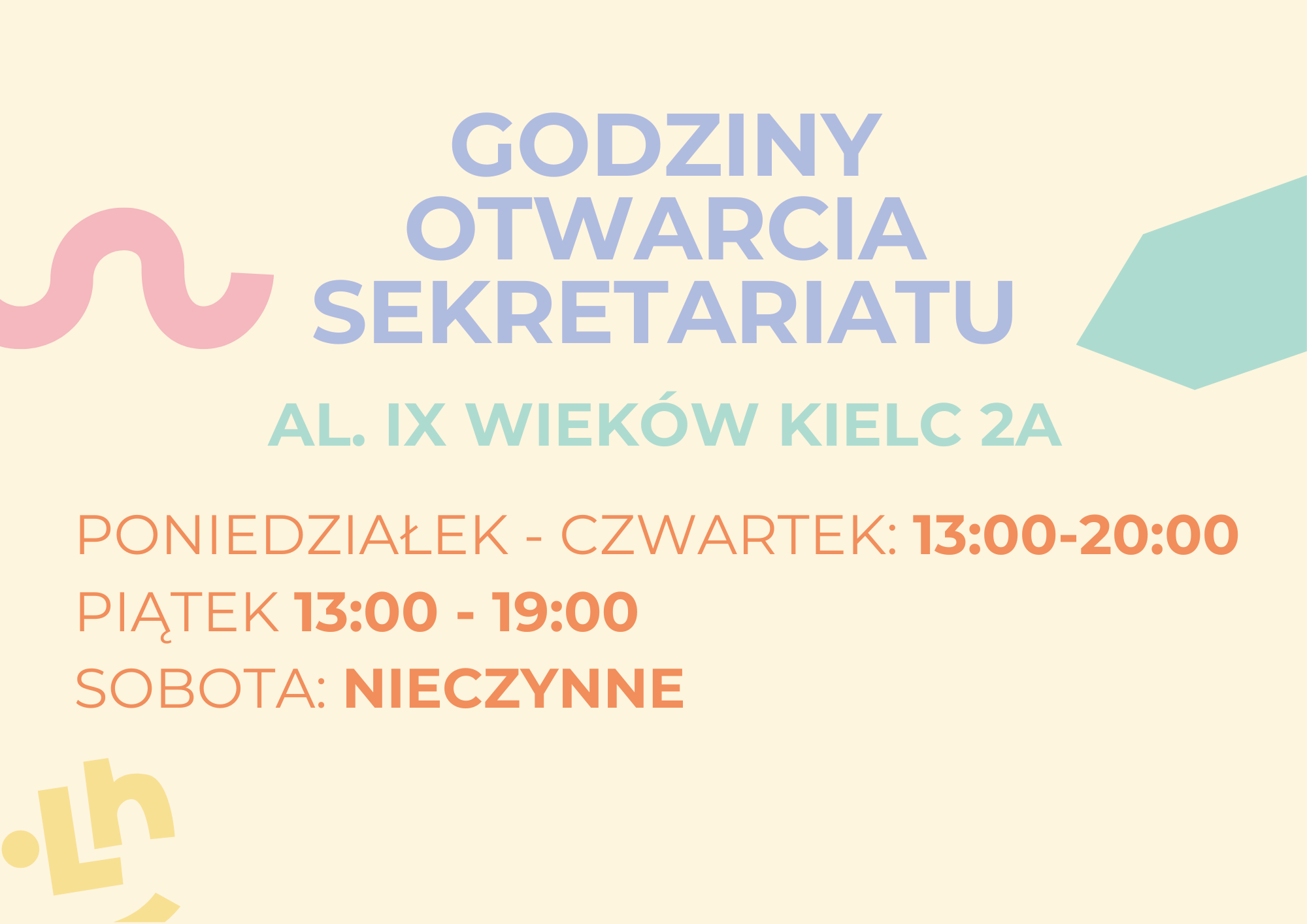 Informujemy, że sekretariat szkoły Language House przy ul. IX Wieków Kielc 2A jest czynny w godzinach:poniedziałek – czwartek : 13:00 – 20:00. piątek : 13:00 – 19:00. Zapraszamy do kontaktu oraz odwiedzin w nowych godzinach pracy.